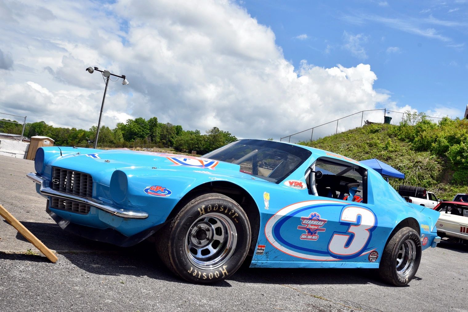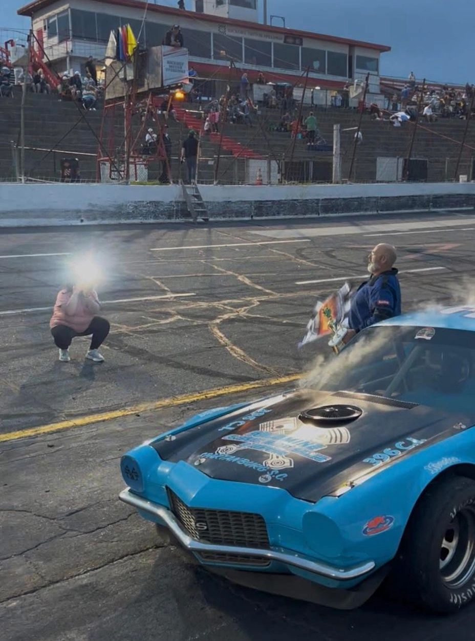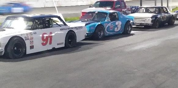 Our vintage cars moved in to Hickory Motor Speedway on May 10th after rain got the May 3rd event. The "Spartanburg Goldminer"Jesse Martin took the #3 Camaro back to victory lane with his new son Elvis at his first race. Midway, Jesse fell back from the lead with a hot motor, but laps later it cooled, and he went back.