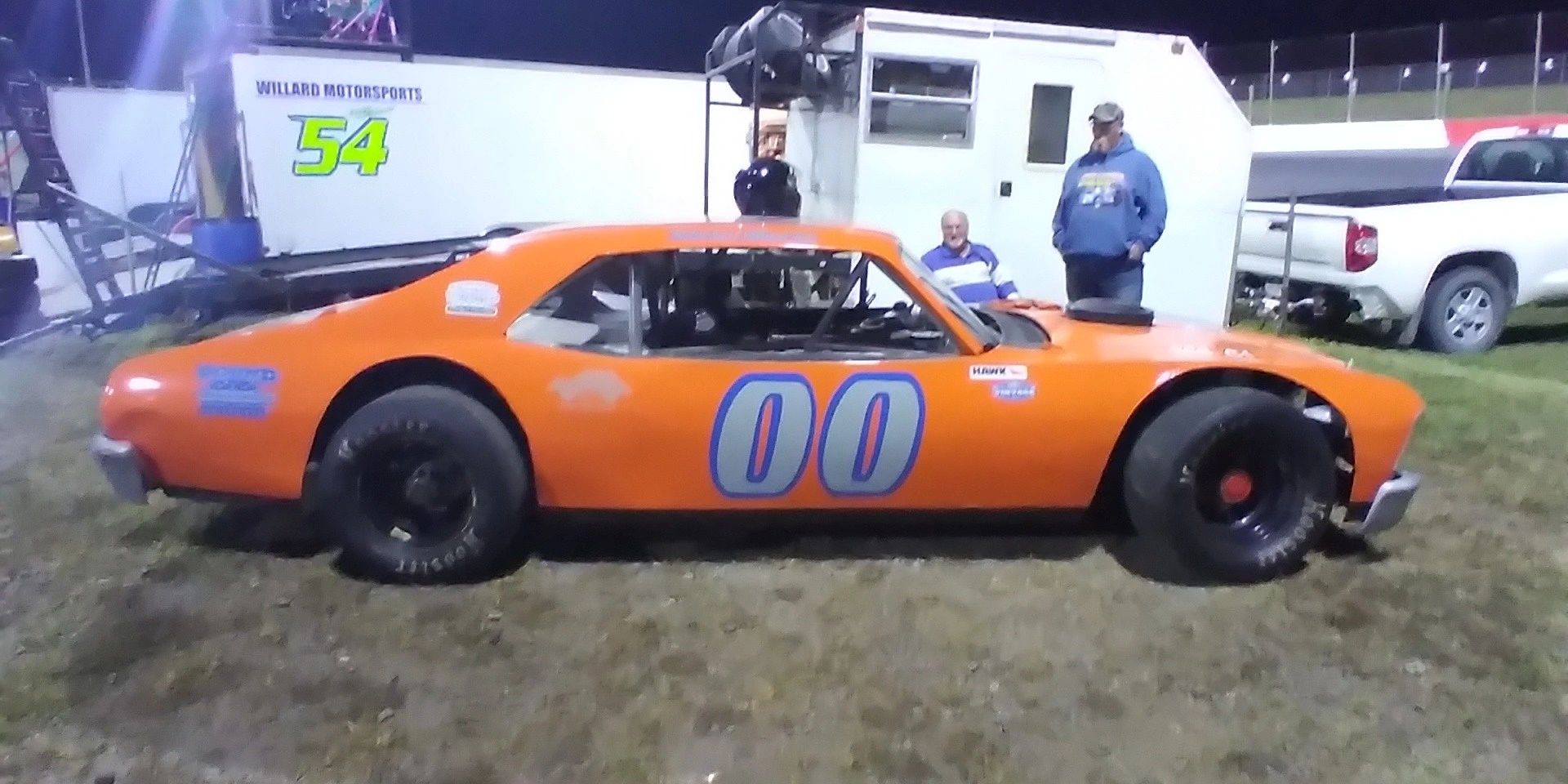 Tri-County Speedway invited our vintage cars on Oct, 11th back to add to their Smart Modifides 99 lap race night. With all the rubber laid down by the 30 some wide-tired modifides, our practices & race made our vintage cars stick like glue to the asphalt. Here is a new '56 Ford that got some practice in but was DNS.